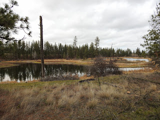 This is one of the prettiest stretches of the Columbia Plateau Trail that you will find. Numerous ponds, abundant wildlife and areas that you pass through that have a sheer rock wall on either side. This section of the trail is in the northern most end of Turnbull National Wildlife Refuge. The trick on this stretch is figuring out where to park. You can access the trail off of Cheney-Plaza road just before the overpass bridge. There is an access road and a really wide turnout area that doesn't block the gate but I got a bad surprise in the mail after parking there one time. A overzealous park employee ticketed me even though I wasn't blocking anything. They threw the ticket out, but, it is a possibility. You can park on the Cheney-Spangle trailhead and walk the mile between to start or park on the other side of the bridge where there is a wide shoulder. If you park at the trailhead a Discover Pass is required. The trail is unpaved but mostly level with fine gravel, not the big rocks you find on other stretches. People run, walk and ride horses and bike on this section. Coming down onto the trail you ae greeted by a large pond on either side. These are quite often filled with geese, ducks and a Blue Heron or two. I have seen owls, hawks and Cormorant here as well. I once came face to face with a coyote, we both hadn't been paying attention and were both surprised. We each went along our way. Elk, deer and moose play in these woods. On this trip the only 4 footers that I saw were a dog playing with his owner and a really interesting American Red squirrel that posed for a photo. Swans, Canadian geese and some ducks dotted the numerous ponds on this stretch. In the spring and early summer these ponds are jam packed with new life, so many really interesting not often seen water fowl choose them for nesting. 3 3/4 miles from the entrance at Cheney-Plaza there is a bathroom complete with hitching post to tie your horse to if you brought one. If you're wanting a little less mileage then the pond about 2 miles or so down the trail from the entrance is a good place to turn around and head back. It has a bench and information about the area on podium type signage.